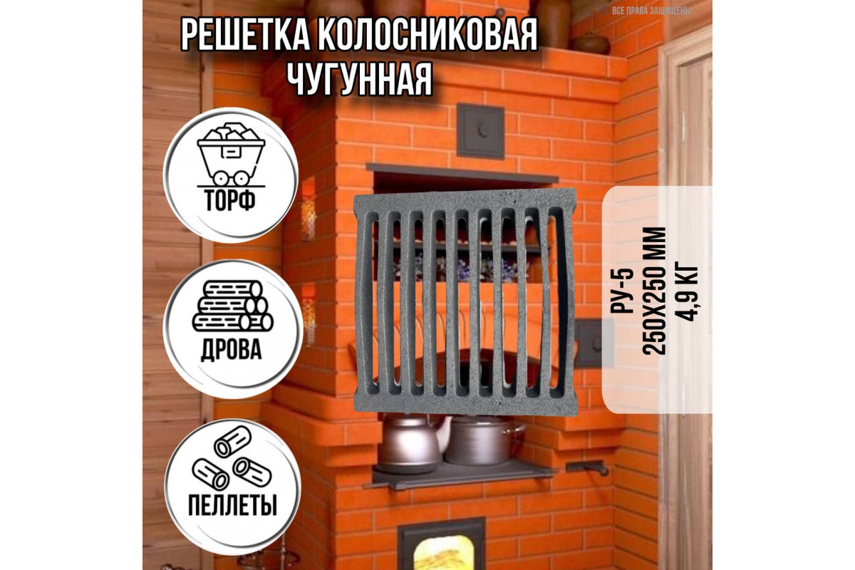 Колосник чугунный для печи РУ 5 250 х 250 4,9кг / решетка колосниковая чугунная для дров, печное литье для отопительной,для банной печи и котла,камина
