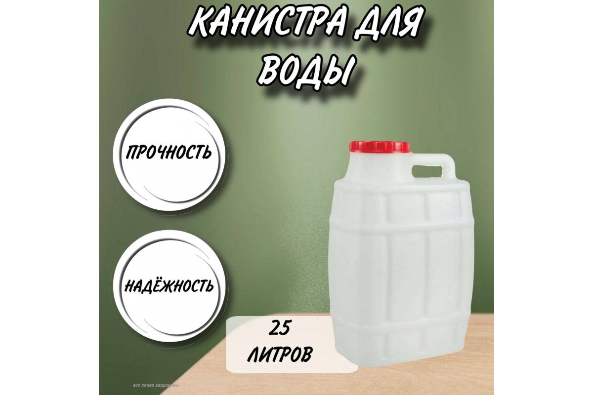 Канистра для воды пластиковая 25 литров бочка емкость с крышкой прямоугольная высокая ребристая М974– это емкость, предназначенная для хранения и транспортировки воды и других жидкостей. Она выполнена из прочного пластика, что делает ее легкой, но в то же время способной выдерживать давление и механические повреждения.