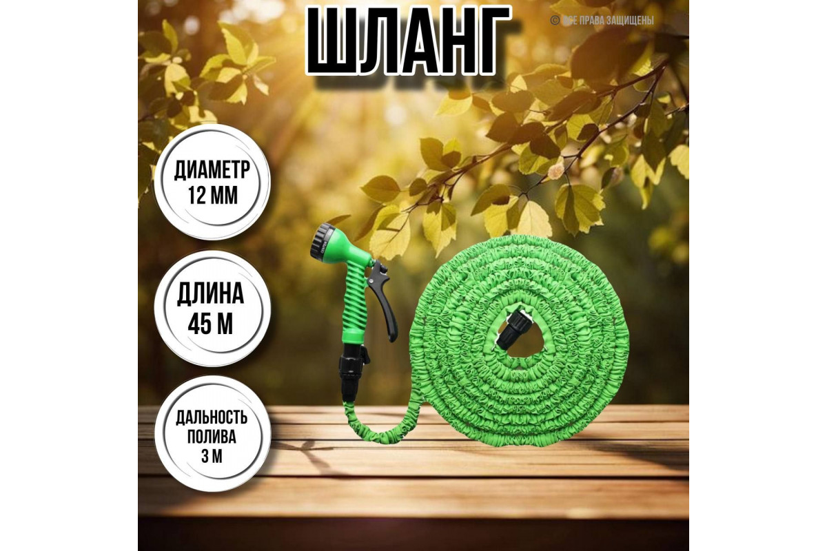 Шланг для воды / шланг поливочный садовый растягивающийся 45 м, пистолет и насадка на кран в комплекте