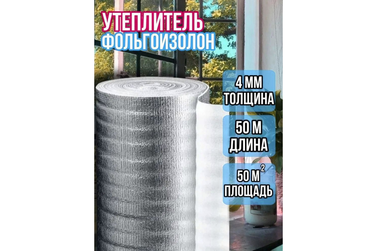 Фольгоизолон 4мм х 1м х 50м — это отражающая теплоизоляция, состоящая из пенополиэтилена и лавсаново..